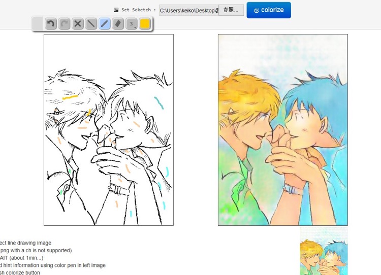 これまたtwitterで流れてきた情報で、PaintsChainerなるwebサービス。