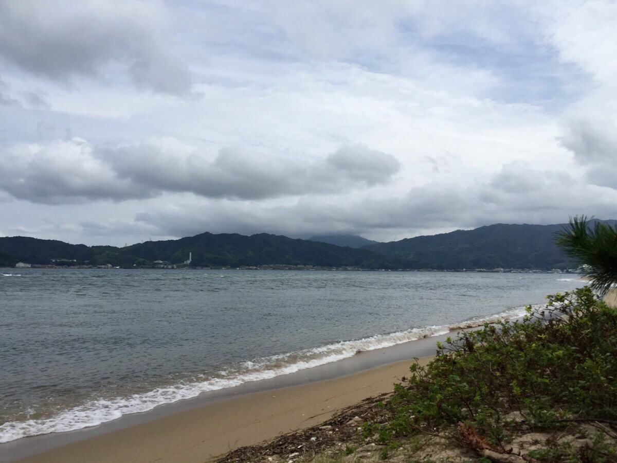 展望台を降りて、歩いて途中まで天橋立を渡りました。