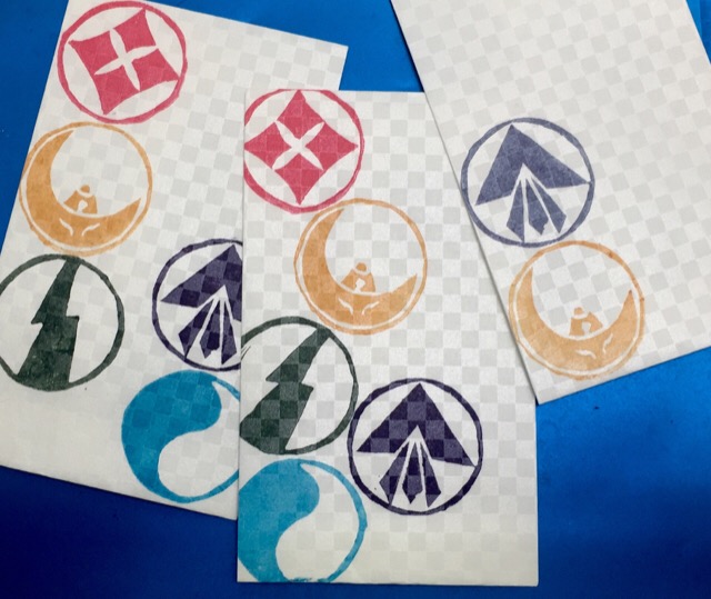 当秀の神崎さんが彫った消しゴムハンコをお借りして、紋章ぽち袋\(≧∇≦)/