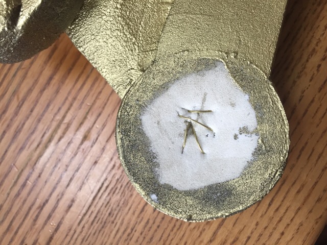 円錐形の発泡スチロールは思いの外先が尖っていなかった(本体から出てる二本の突起のうちの尖ってない方が、円錐形の先そのまんま)ので、造形用の目の細かい紙粘土で足しました。